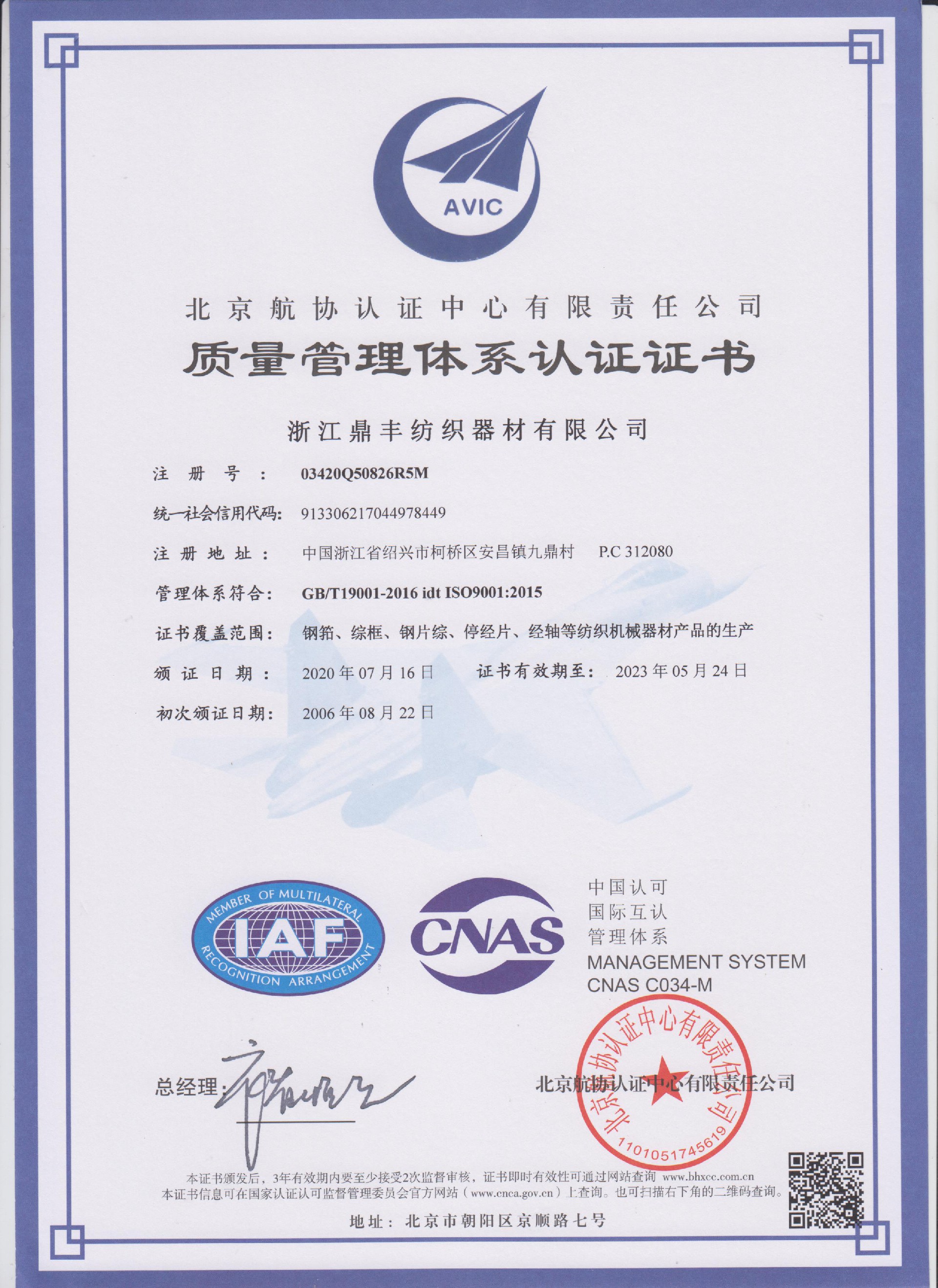 公司現(xiàn)有固定資產(chǎn)6000余萬元,員工300余人,現(xiàn)具有年產(chǎn)噴氣異型筘12萬米,劍桿筘32萬米,噴水筘5萬米,綜框20萬片,鋼片綜2億片,停經(jīng)片1.5億片, 織軸1.2萬套的生產(chǎn)能力。公司“越泉”商標(biāo)被評(píng)為“中國馳名商標(biāo)”。公司通過ISO9001 :2015國際質(zhì)量體系認(rèn)證,ISO14001:2015國際環(huán)境管理體系認(rèn)證,ISO45001:2018國際職業(yè)健康安全管理體系認(rèn)證,噴氣織機(jī)用鋼筘和織機(jī)用鋁合金綜框獲得“浙江制造”品牌認(rèn)證,公司擁有自營進(jìn)出口權(quán),產(chǎn)品暢銷全國并遠(yuǎn)銷印度、巴基斯坦、土耳其、埃及、哥倫比亞、意大利等國家和地區(qū)。